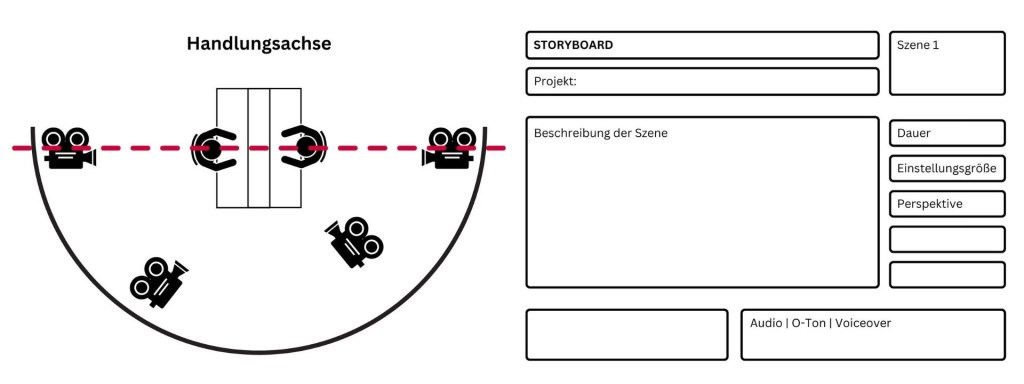 Ein hilfreiches Tool für die Planung ist das Storyboard. Dieses unterteilt das Video in einzelne Takes und enthält genaue Informationen dazu, was und wie etwas in der jeweiligen Szene zu sehen ist. Bei der Erstellung eines Storyboards helfen die fünf W-Fragen: